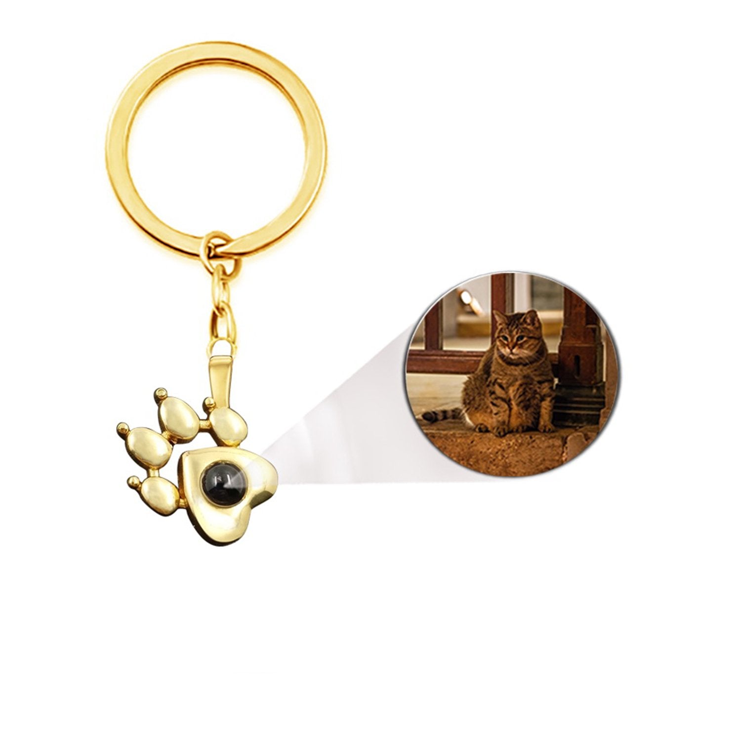 - En nøkkelring med personlig poteavtrykk - en personlig nøkkelring med bilde av din favoritthund eller -katt. Hver nøkkelring er laget av materiale av høy kvalitet.